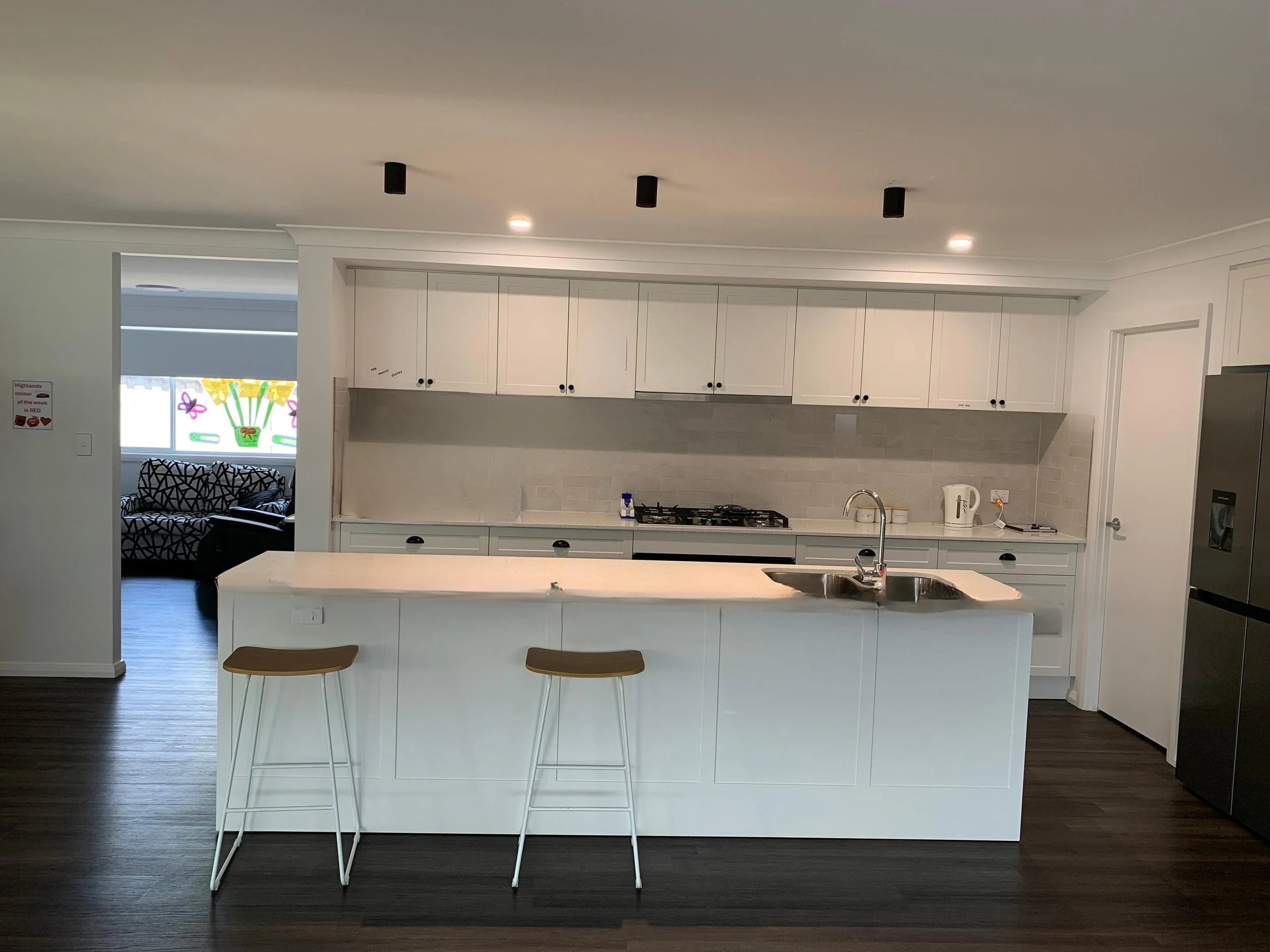 Multiple open plan living spaces with large kitchen, where our current participants love crafting and gardening